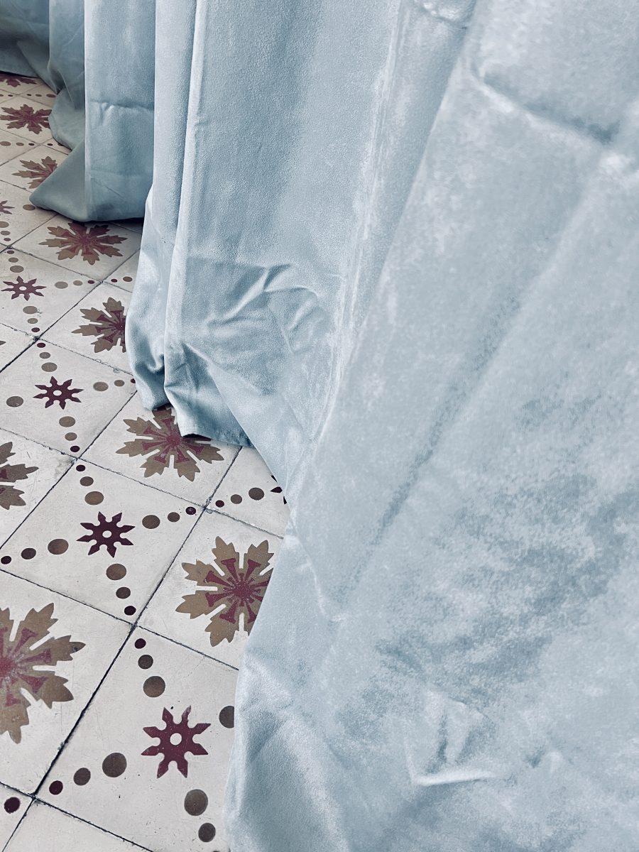 Another item on our long list of “things we’d love to have in the house”, included some kind of chair/seating arrangement, under the window in our bedroom. We’re working hard to make this a really comfy, relaxing room, that is a bit of a haven. The en-suite has been created and our beautiful black sanitary-ware installed, and because it’s recessed slightly, as well as the double doors into this room, we’ve also added a long stretch of duck egg blue velvet curtains across the wall, softening the entrance, and therefore softening the feel of the room.